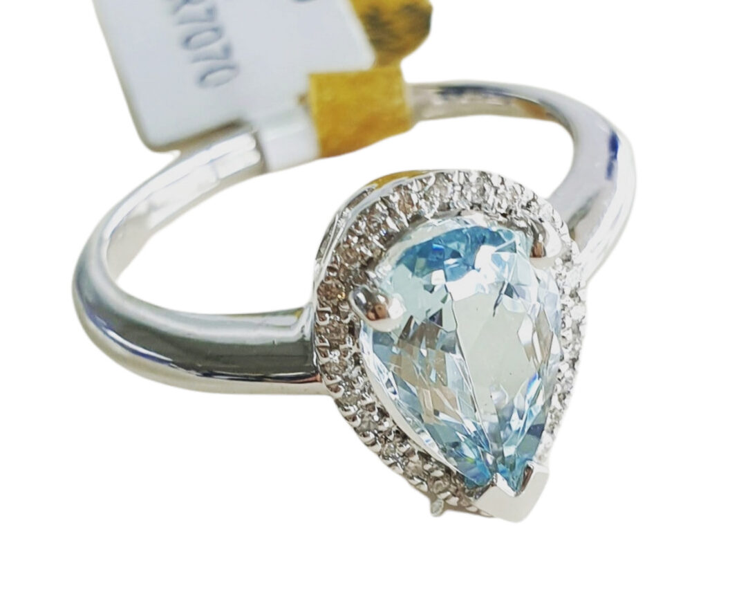 Pear Cut Aquamarine and Diamond Halo Ring 18ct White Gold